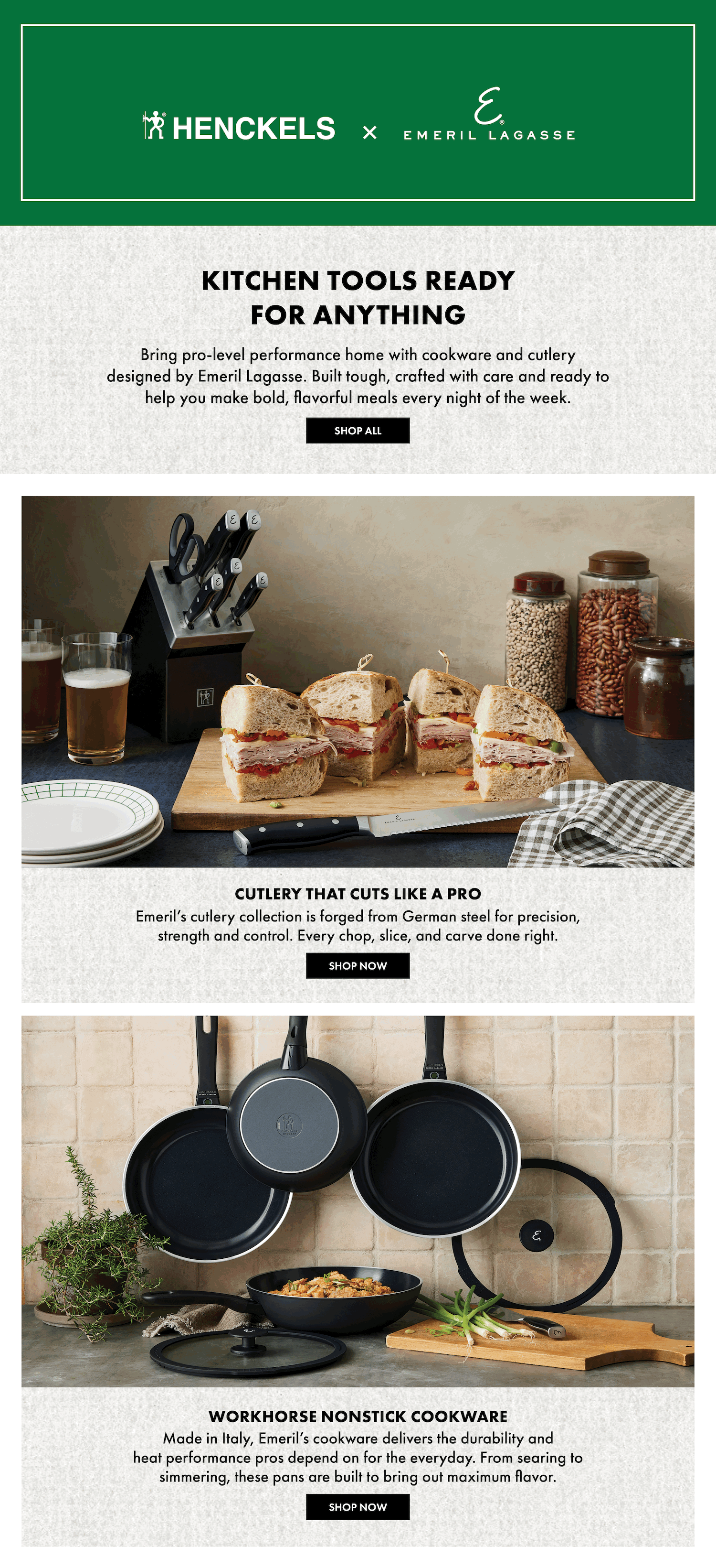 At Marquee Brands, I lead art direction for the Emeril Lagasse brand across packaging, digital, and e-commerce design. My work involves reviewing partner-submitted dielines and providing creative direction on typography, color, and layout to ensure visual consistency across all products. I’ve also created digital assets including Amazon wireframes, promotional banners, and email campaigns, translating Emeril’s approachable yet elevated aesthetic into cohesive, conversion-driven visuals.